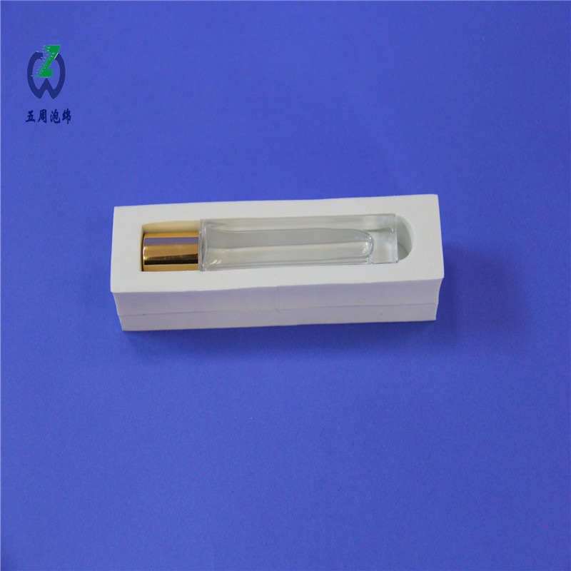 細長透明香水瓶的包裝痛點,始終是瓶身易折斷、展示效果差,五周泡棉的白色 EVA 內襯方案,精準解決了這一行業(yè)難題。